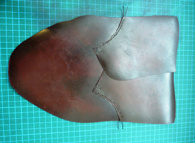 Then towards the end of the week I was taught how to make a pair of shoes, including: cutting the pattern pieces, stripping dye from the leather, adding dye to the leather, hand sewing the pieces together, adding eyelets, lasting and finally attaching the sole.